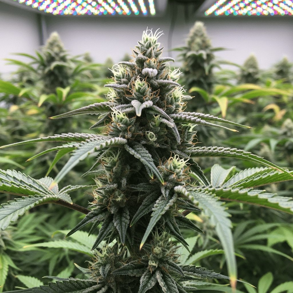 Expect a 9 to 10-week flowering window with a consistent finish across phenos, most expressing dense, lavender-tinged buds wrapped in greasy trichomes. Indoor yields land around 450–500g/m² with proper canopy control, while outdoor plants—when given room and light—can reach 600–650g per plant. At 4 to 5 feet tall, vertical stretch is moderate, and plants stay structurally sound even late in flower. This hybrid thrives in both indoor and outdoor settings, with a slight preference for controlled environments where humidity can be dialed in during late flower. It’s not overly demanding but does respond best to attentive growers who can manage feed and airflow through the final weeks.