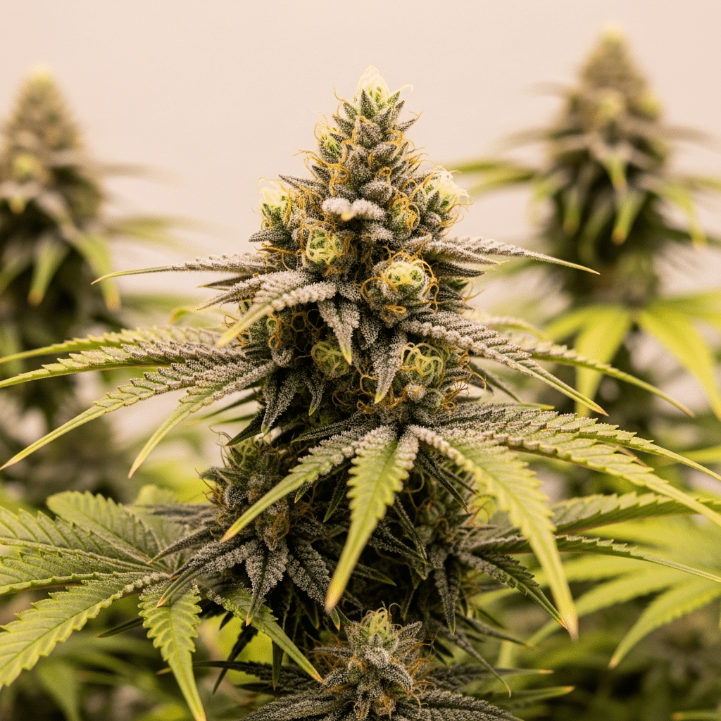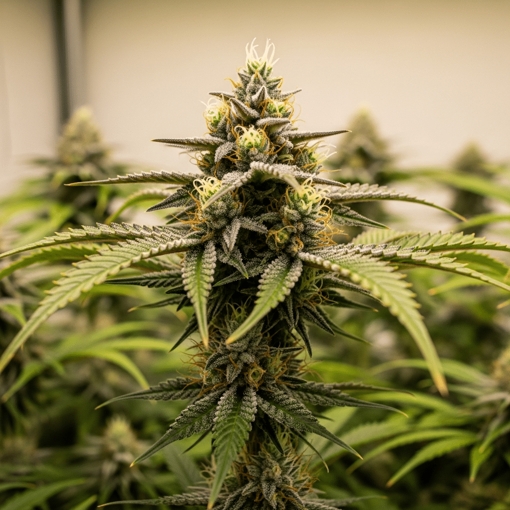 Flowering typically completes in eight to nine weeks, with indoor yields averaging 450 to 500 grams per square meter when conditions are properly managed. Outdoor plants can reach 600 to 650 grams per plant with sufficient sun exposure and airflow. Height remains manageable, rarely exceeding four feet, which helps maintain even light penetration across the canopy. Overall difficulty is moderate, with best results coming from attentive feeding and steady defoliation to open mid-level bud sites. Trichome production ramps up noticeably from week six onward, and maintaining controlled humidity late in flower helps preserve the thick, milky resin layer through harvest.
