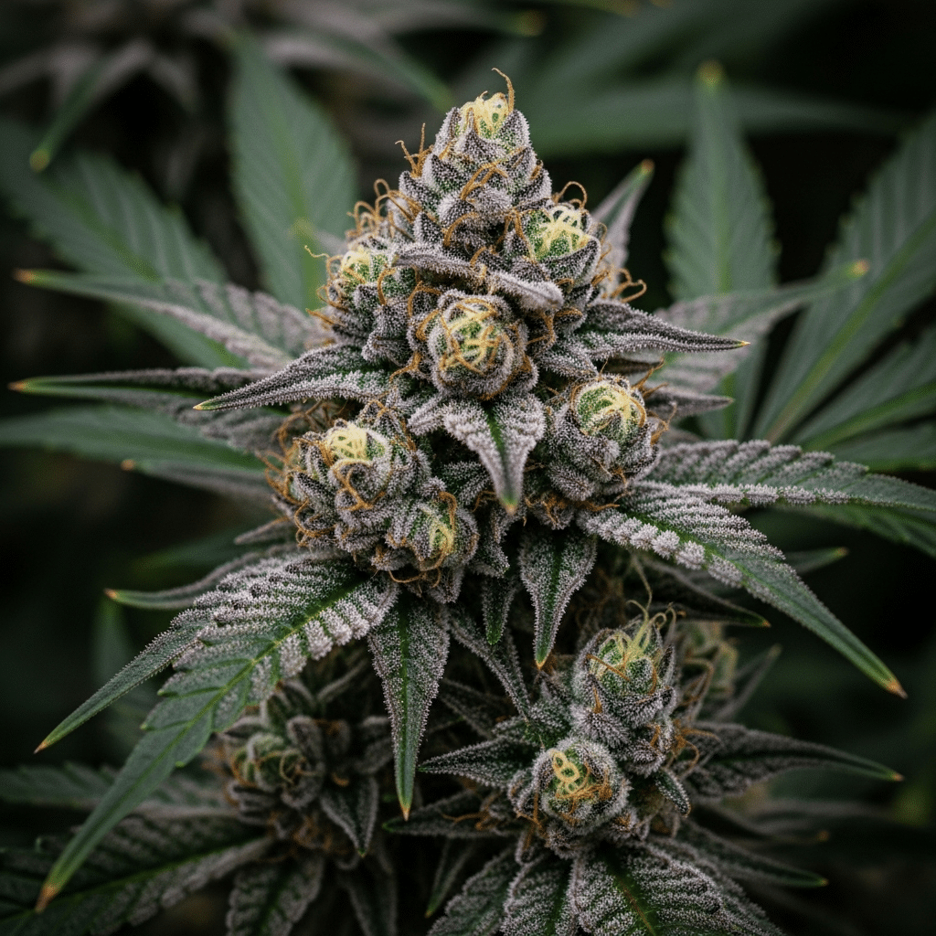 Built from Starfighter x Girl Scout Cookies, this hybrid blends the dense bud formation and frost output of the Starfighter line with the classic GSC structure—shorter internodes, moderate stretch, and a tendency toward rounded, golf-ball colas. Expect moderate vertical growth maxing out around 4 feet, with a canopy that responds well to topping and light LST. The Starfighter influence brings subtle foxtailing near the apex, while the GSC backbone tightens up node spacing and supports a symmetrical branch layout. These genetics thrive under structured training and controlled environments, with minimal leaf-to-bud ratio and strong apical dominance early in veg.